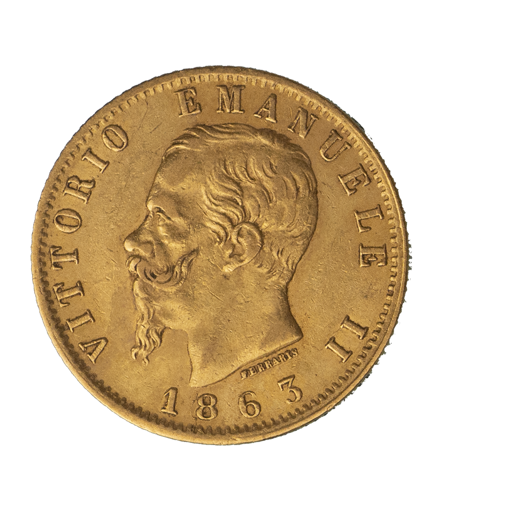 Description : Tête nue de Victor-Emmanuel II à gauche; au-dessous signature FERRARIS et 1863 .