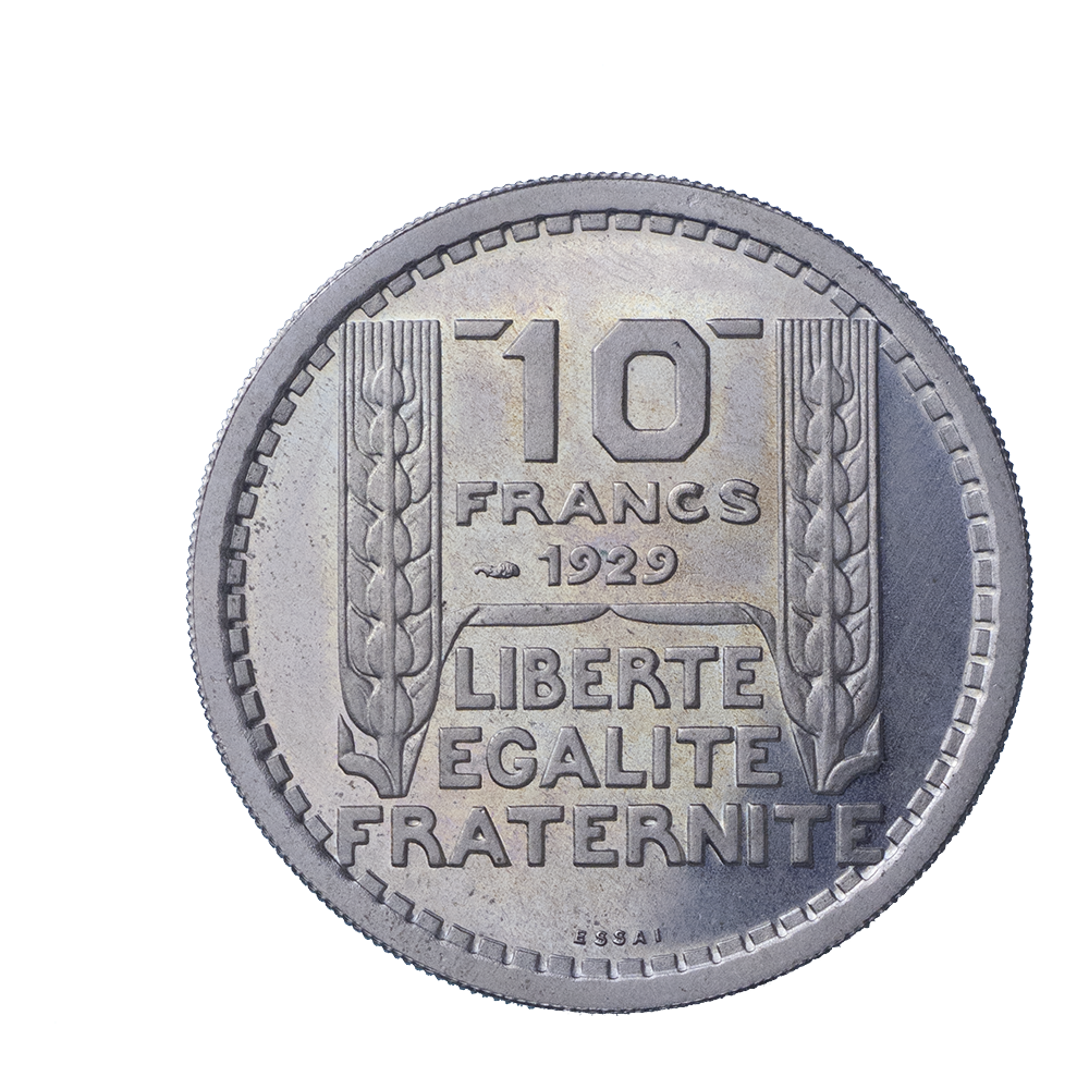 Légende : 10 / FRANCS / 1929 / LIBERTE / EGALITE / FRATERNITE // ESSAI.