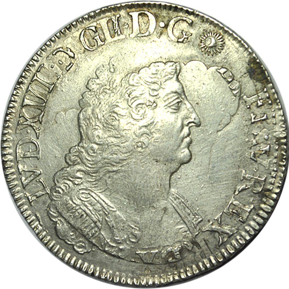 TUTILATURE : LVD. XIIII. D. G. FR. ET NAV. REX. (Louis XIV, par la grâce de Dieu, roi de France et de Navarre).