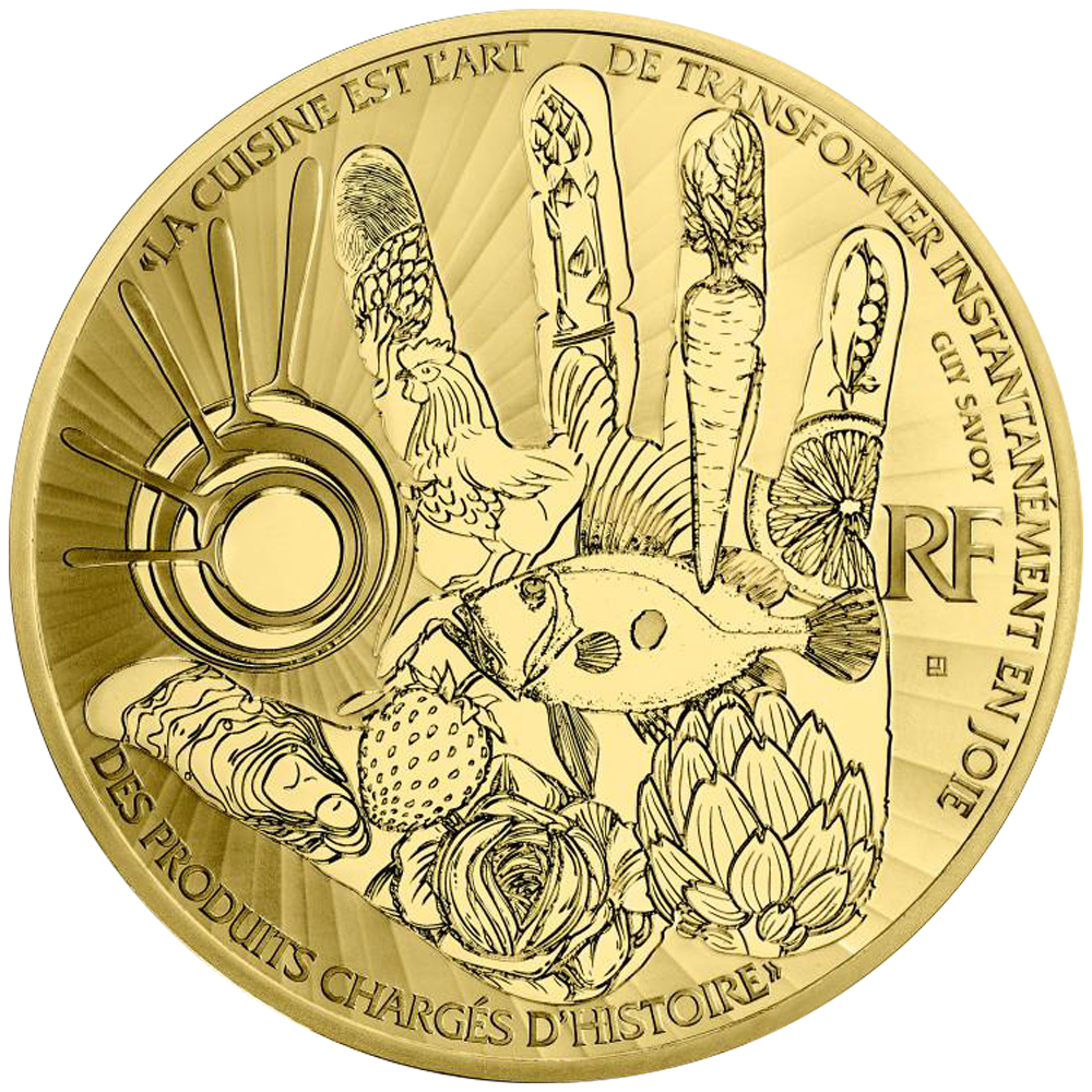 Les monnaies de collection et la médaille de cette série reprennent l’univers du cuisinier Guy Savoy au travers de motifs inspirés de son registre culinaire.