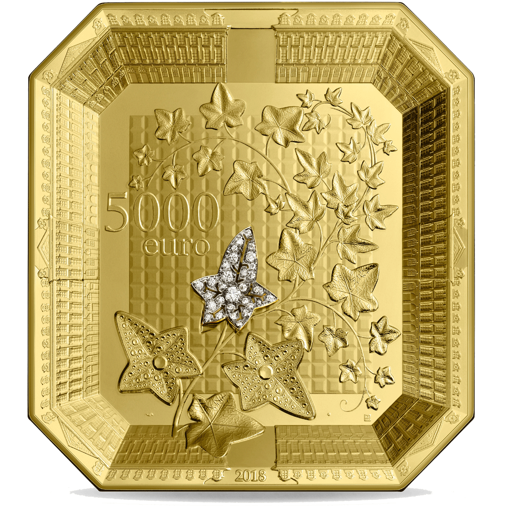 Cette pièce d’un Kilo Or dont la forme octogonale évoque celle d’une pierre taille émeraude, en hommage au travail exemplaire de la maison Boucheron, est frappée à seulement 11 exemplaires.