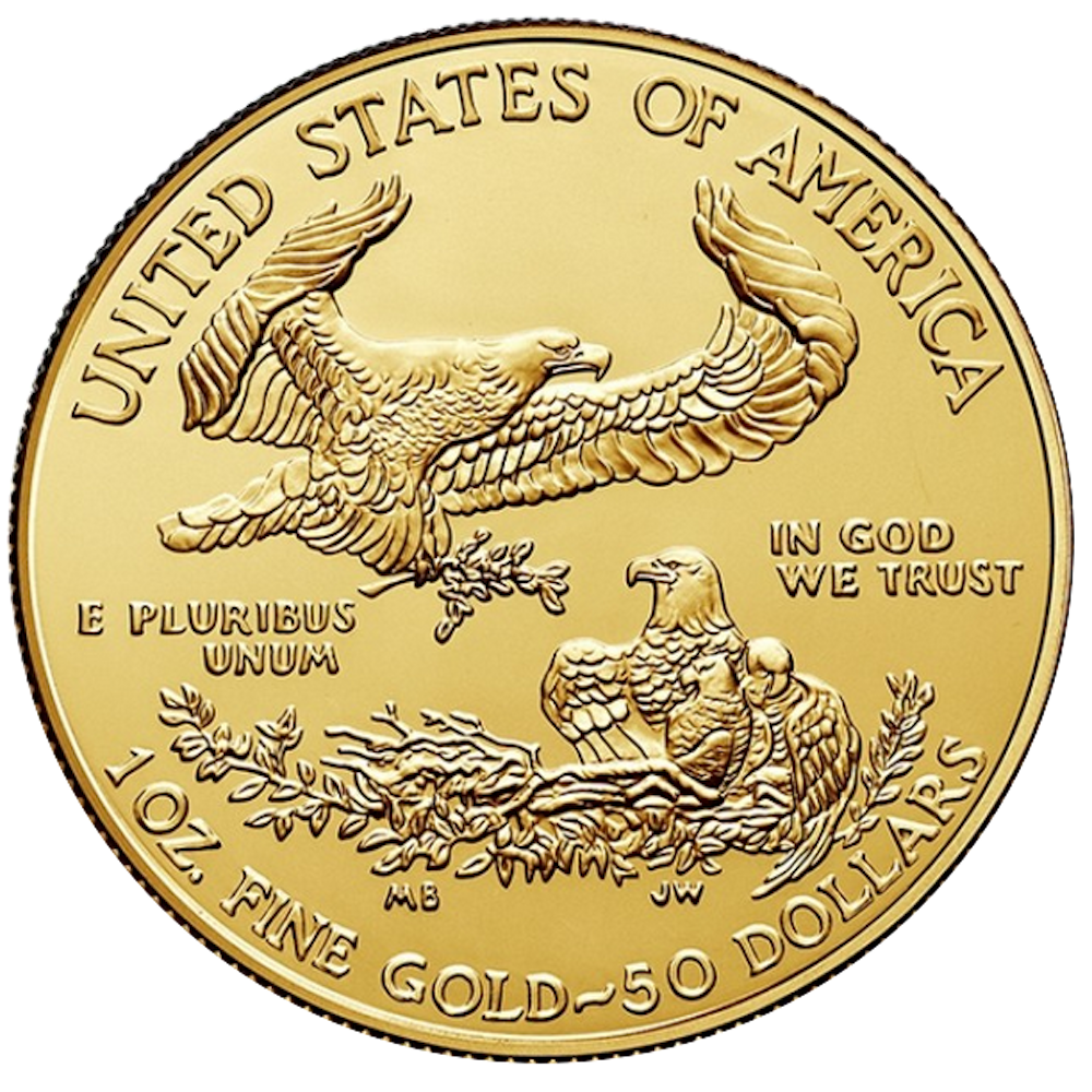 On doit ce design au sculpteur Miley Busiek. Dans la partie supérieure, la titulature donne à voir les mots suivants : « UNITED STATES OF AMERICA », dans la partie inférieure on peut lire « 1 OZ FINE GOLD - 50 DOLLARS ». De part et d’autre du nid sont écrits les mots « E PLURIBUS UNUM (…) IN GOD WE TRUST ».