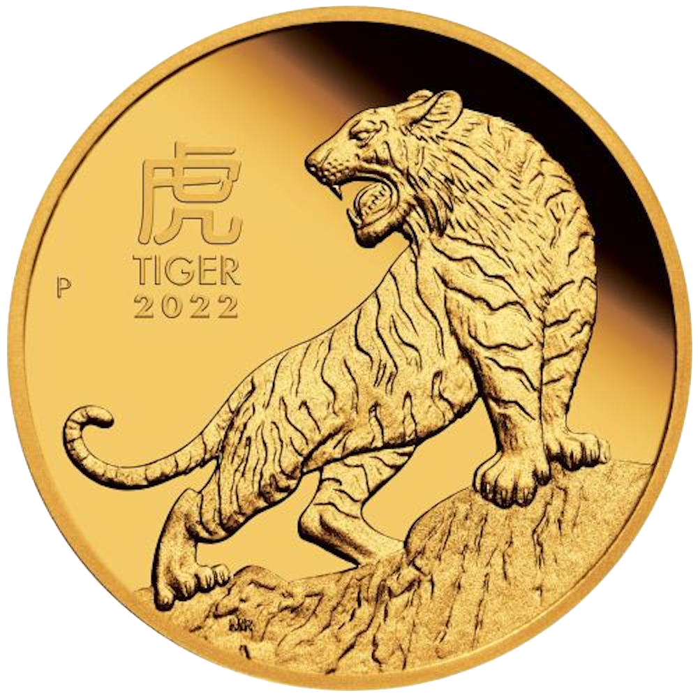 La pièce de 2022 met en vedette le Tigre, symbole de détermination, courage, confiance et charme. Les personnes sous influence du signe du Tigre sont nées en 1950, 1962, 1974, 1986, 1998, 2010 et 2022.