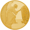 Sur le revers de cette pièce en Or, on retrouve la célèbre scène où la princesse Leia confie les plans de l'Etoile Noire au courageux droïde R2-D2.