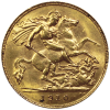 Le revers du demi Souverain or a été conçu par Benedetto Pistrucci, dont les initiales sont visibles à droite de la date.