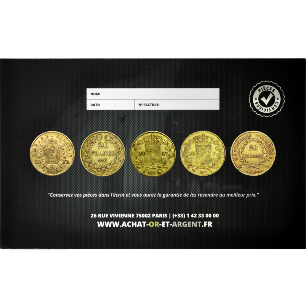 Ce set exceptionnel mettra en valeur votre assemblage de pièce en Or et ravira les collectionneurs. Mais de plus, le set de 5 Pièces 20 Francs Or est un cadeau original et personnalisable.