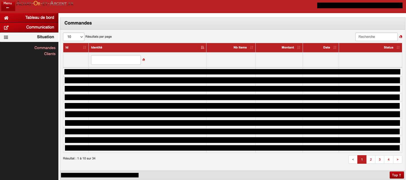 - Les commandes réalisées (dates, produits achetées, prix..)